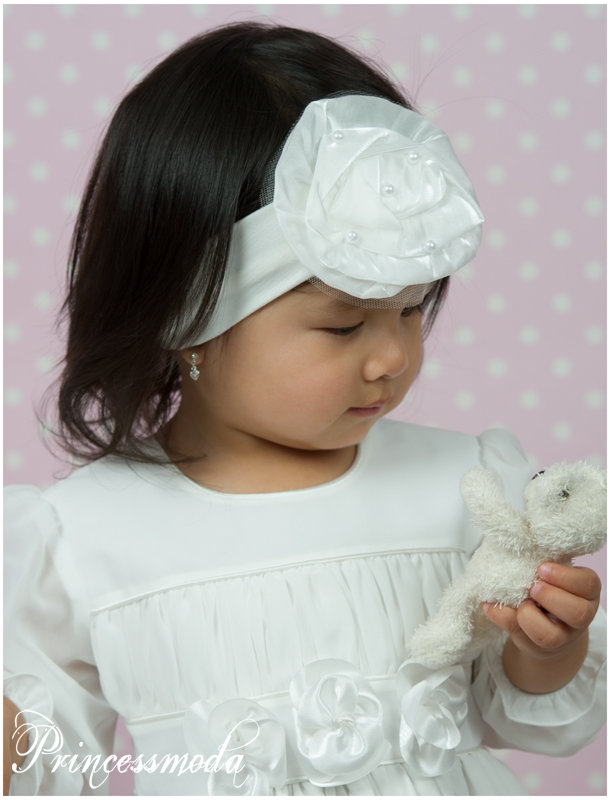 Gefertigt per Hand, aus sehr weichem, elastischem, sehr zartem Gummi (2cm Breit). Passt sich wunderbar dem Babyköpfchen an! Geschmückt ist das Stirnband mit einer Blume aus edlem Organza und Braut-Tüll. Auf der Blume befinden sich viele kleine Perlen! Die Blume hat einen Durchmesser von ca. 7,5 cm und mit Tüll ca. 10 cm
