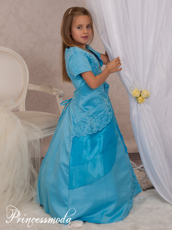 Verspielt romantisches Abendkleid mit passendem Bolero in Blau!