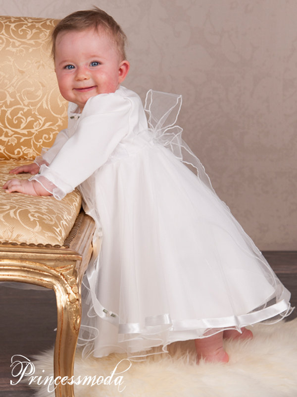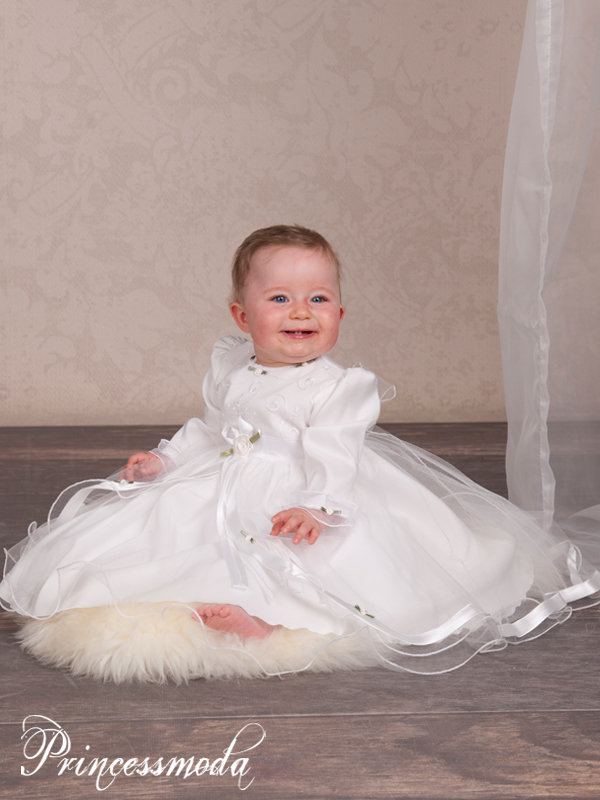 Ein wunderschönes und sehr elegantes Taufkleid inkl. Hut in zartem Ivory aus edlem Satin und Tüll.