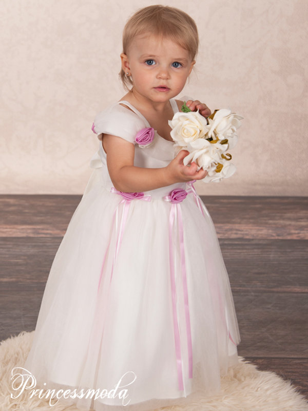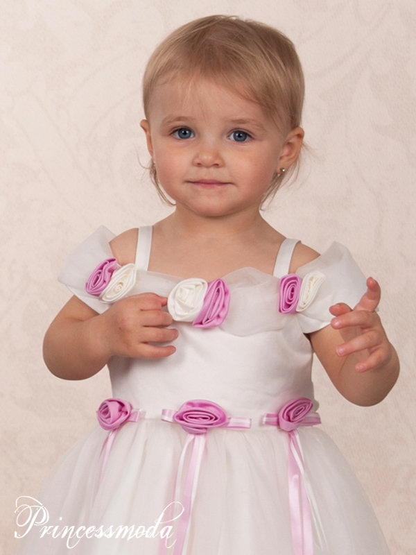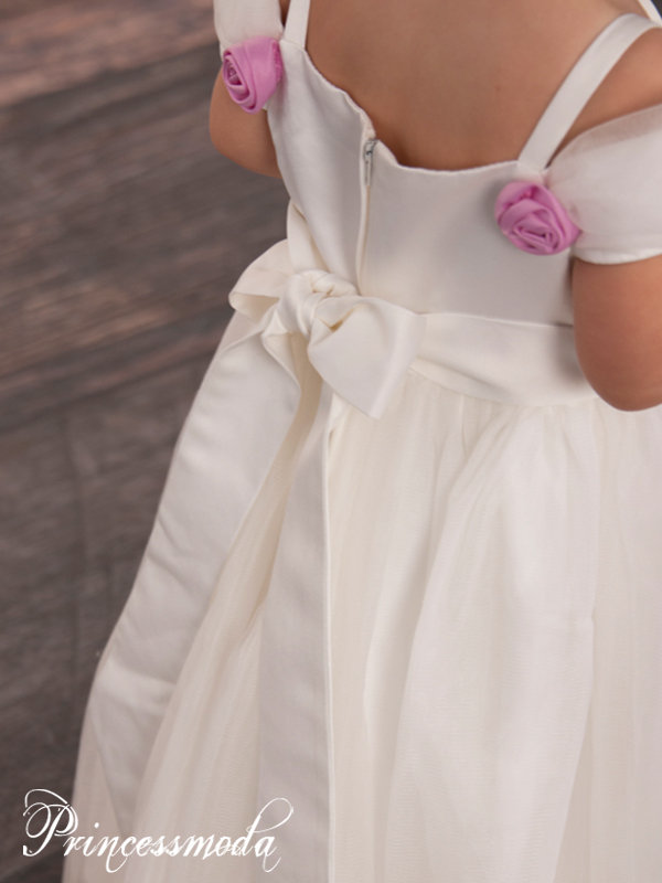 Das Oberteil hat einen U-bootausschnitt (jedoch zusätzlichen Halt durch 2 Träger). Der Ausschnitt sowie auch die zarten Ärmelchen wurden mit traumhaft schönen Blumen verziert!