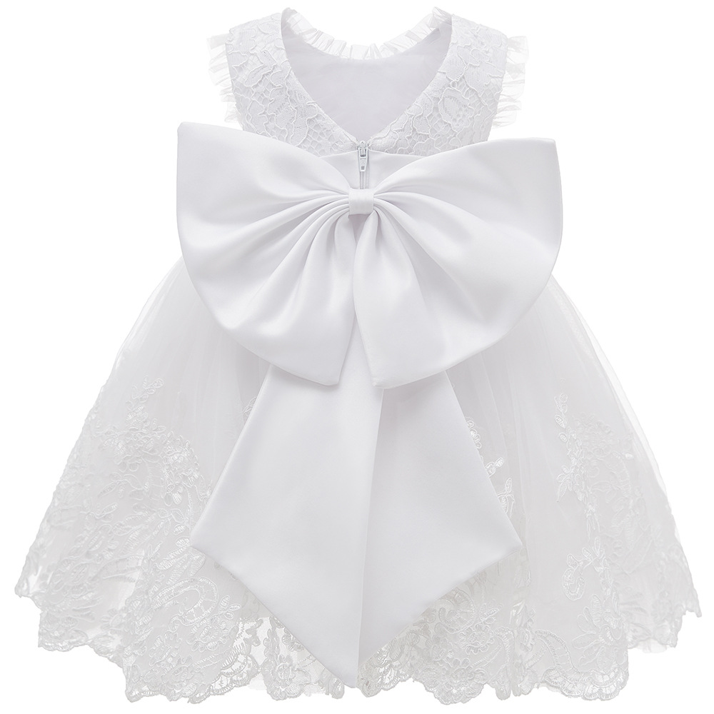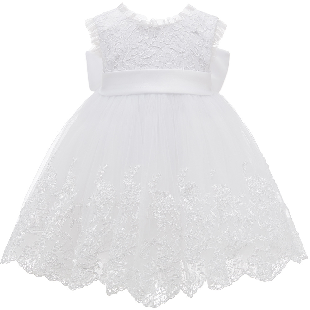 Traumhaft schöne Spitze am Rockrand und die große Schleife am Rücken machen das Festkleid einzigartig!