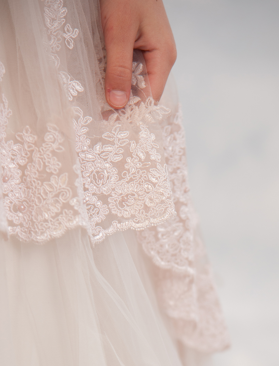 Wunderschöne Spitze (Applikationen) im Brustbereich und auf dem Überrock.
