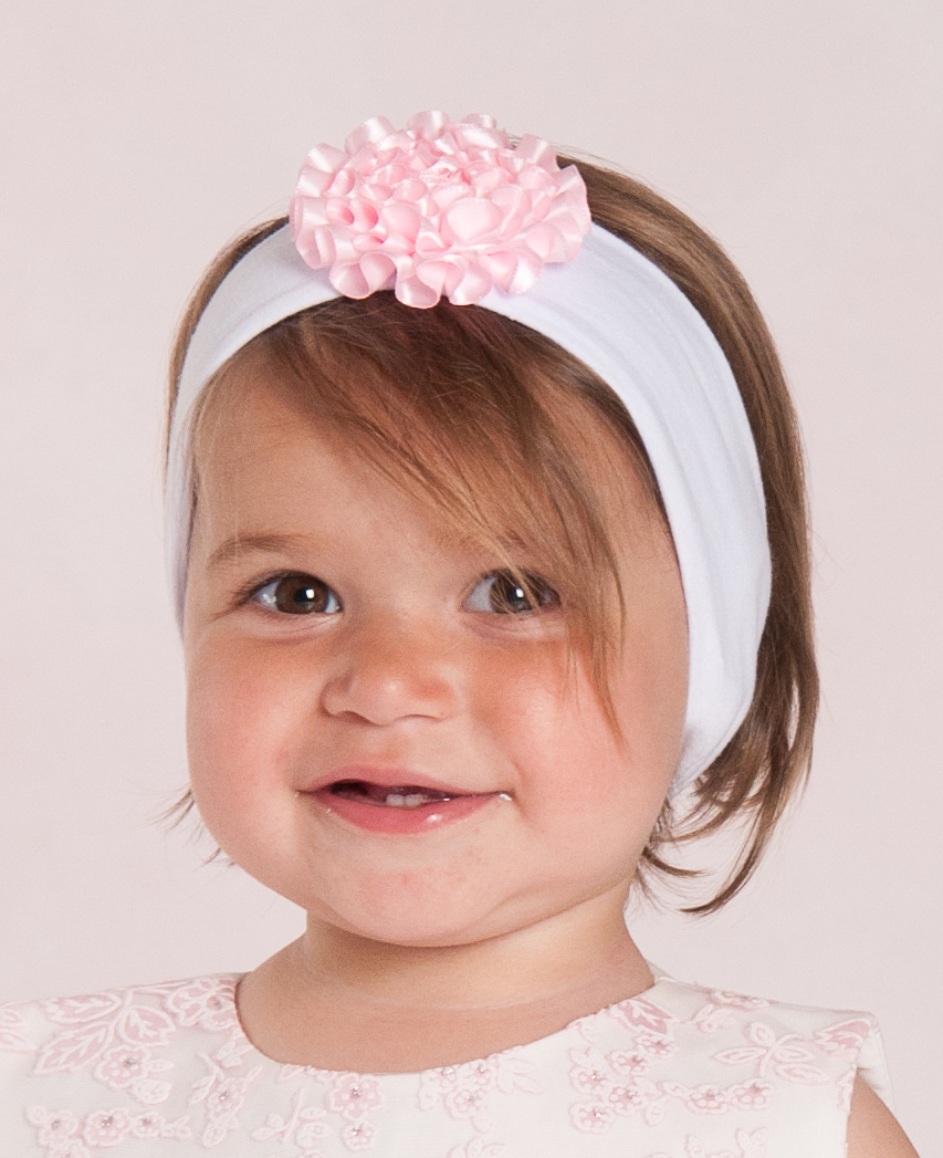 Das Stirnband wurde mit einer schönen Blume in Rosa vorne versehen, der Hingucker!